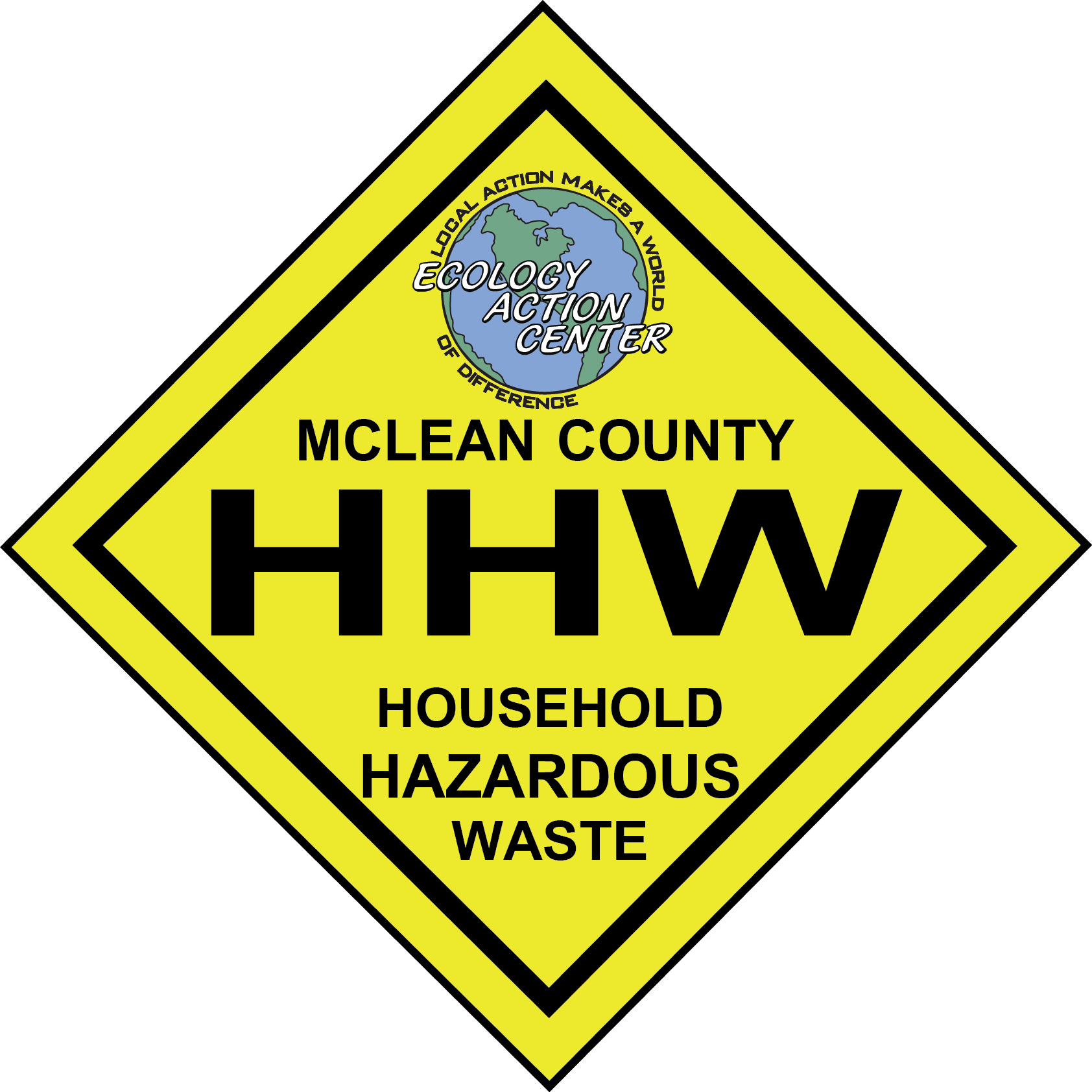 McLean County Household Hazardous Waste logo on a bright yellow sign.