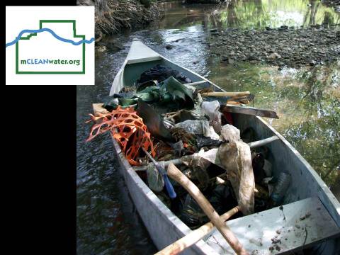 A canoe full of trash in a creek as part of a McLean Water program to clean the watersheds in the community.