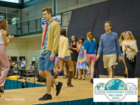People walking on a stage as part of the Sustainable Fashion Show at the Illinois Sustainable Living and Wellness Expo.