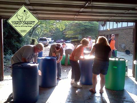 Community Members attending a rain barrel workshop hosted by the Ecology Action Center.